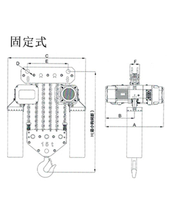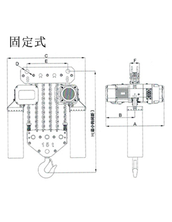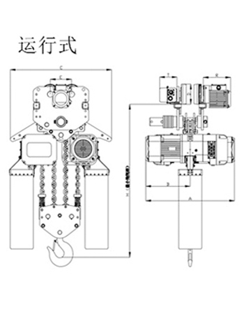| 運(yùn)行式環(huán)鏈電動(dòng)葫蘆(30T-50T)尺寸參數(shù): | ||||||