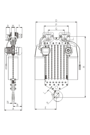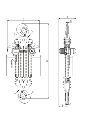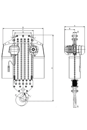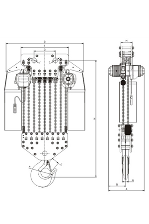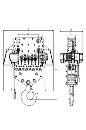 掛板式環(huán)鏈電動(dòng)葫蘆(7.5T-50T) 尺寸參考: