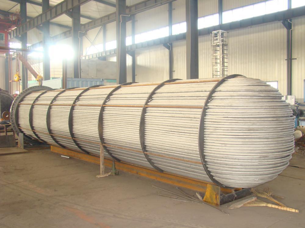 屬于列管換熱器的一種,換熱器的工作原理都熱量從高溫端傳遞至低溫段,U型管式換熱器管程每根管子都彎成U形,管子的兩端分別安裝在同一固定管板的兩側(cè),并用隔板將封頭隔成兩室,每根管子都可以自動(dòng)收縮,與其它管子和外殼無關(guān),即使殼體與管子間溫差很大時(shí)也使用,實(shí)際生產(chǎn)中循環(huán)水冷卻高溫氣體便常用U型管式換熱器,